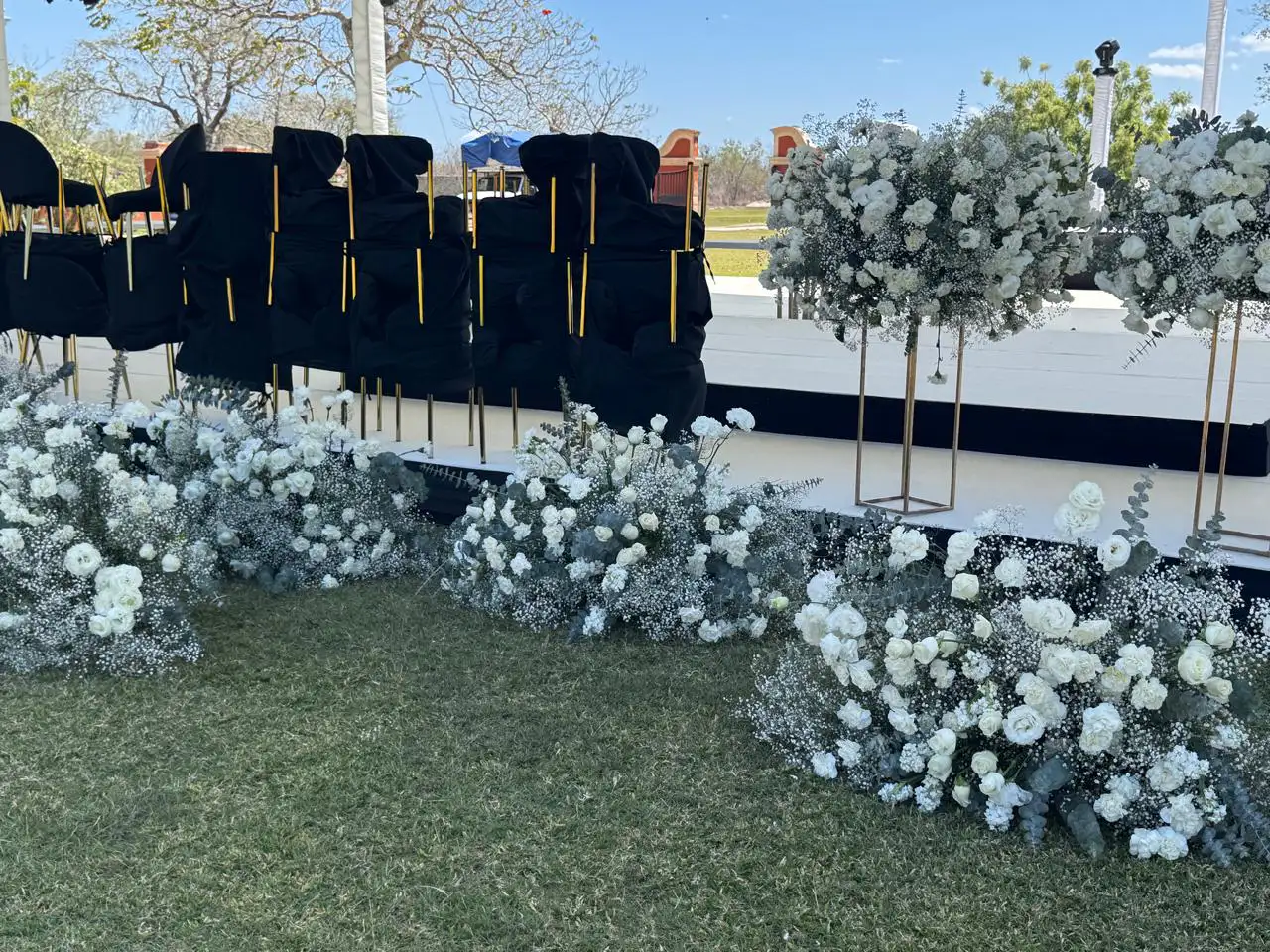 We work with fresh, tropical, or seasonal flowers, as well as premium preserved or high-end artificial options. From centerpieces to monumental arches, we take care of every visual and emotional detail.